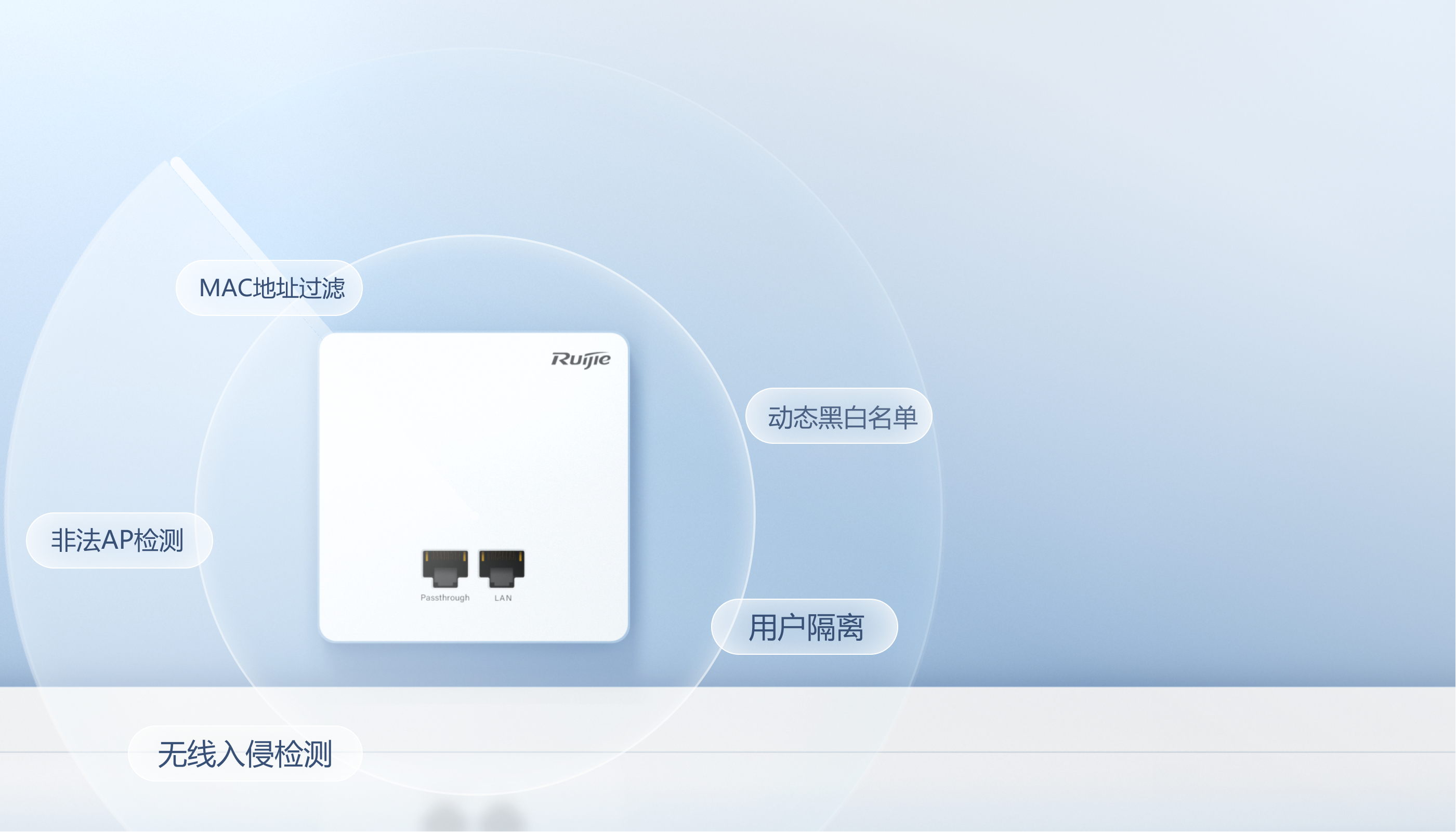 配合尊龙时凯网络一体化网管系统RG-SNC以及RG-WS系列无线控制器,AP180-L-A具备WIDS(无线入侵检测)、射频干扰定位、流氓AP的反制、防ARP欺骗、DHCP安全保护等一系列无线安全防护功能,从根本上为用户构建真正安全可靠的无线网络。