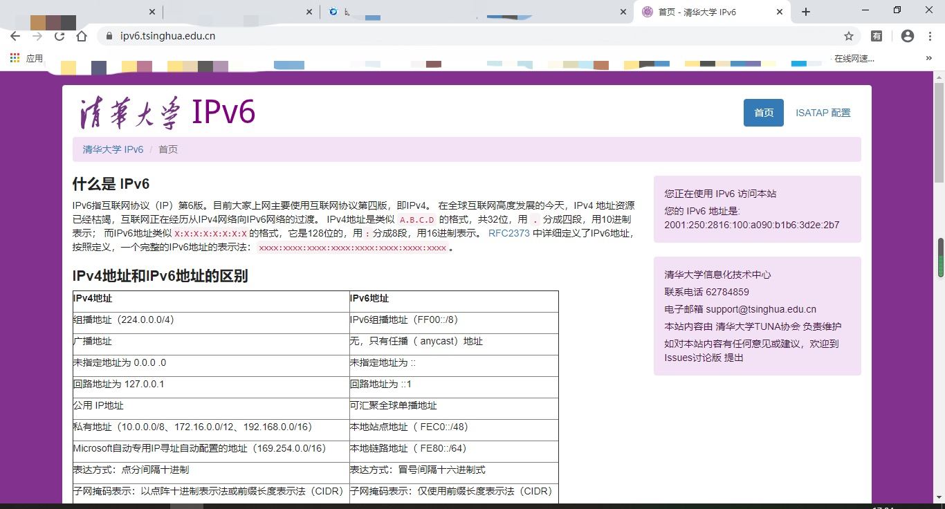 通过IPv6成功访问清华大学官网