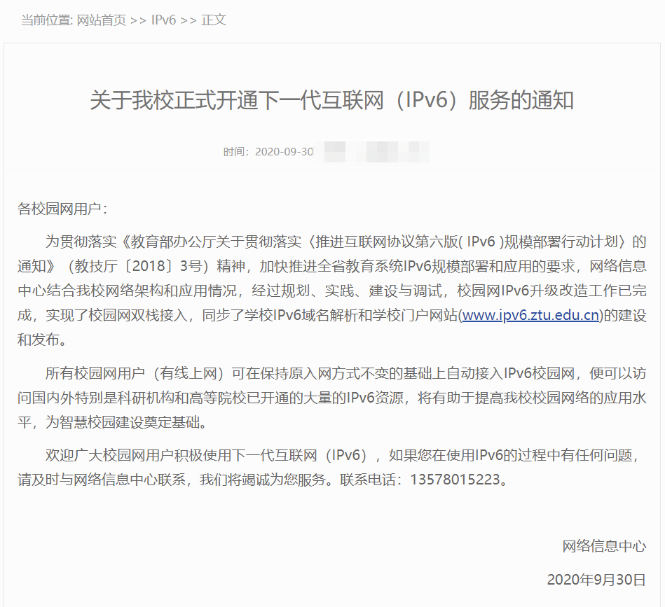 学校面向全校师生全面开通IPV6服务